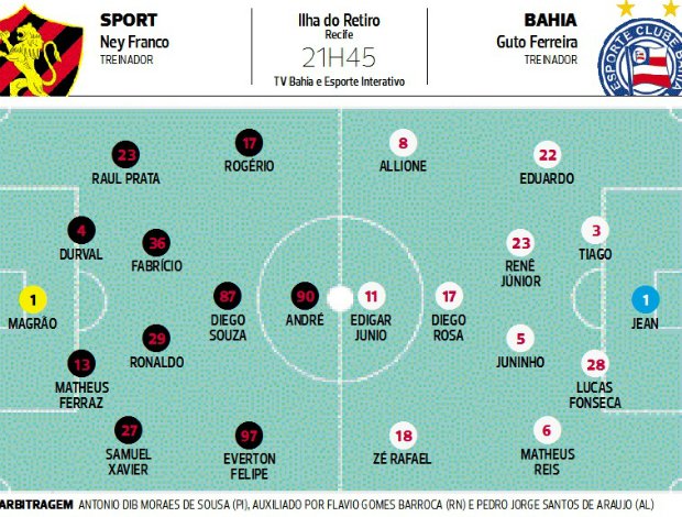 Artilheiro do time no ano com 11 gols e da Copa do Nordeste com seis, o meia foi expulso no segundo jogo da semifinal e está suspenso. Diego Rosa deve ser o substituto. Outra opção seria colocar o centroavante Gustavo e mover Allione ou Zé Rafael para a faixa central do meio-campo. O substituto só será revelado minutos antes da bola rolar.