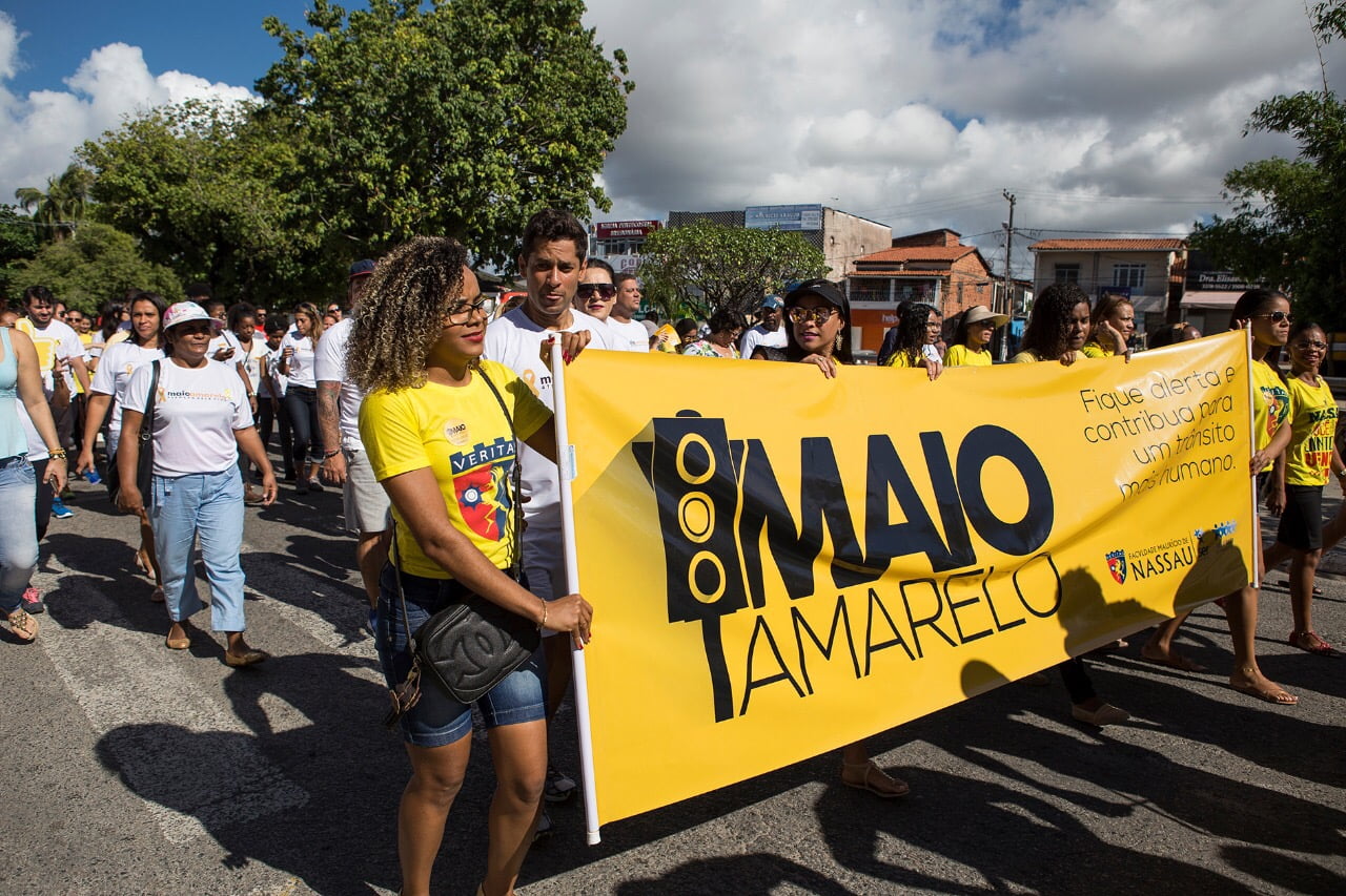 Caminhada pela paz no trânsito leva o alerta do Maio Amarelo ao centro de Lauro de Freitas