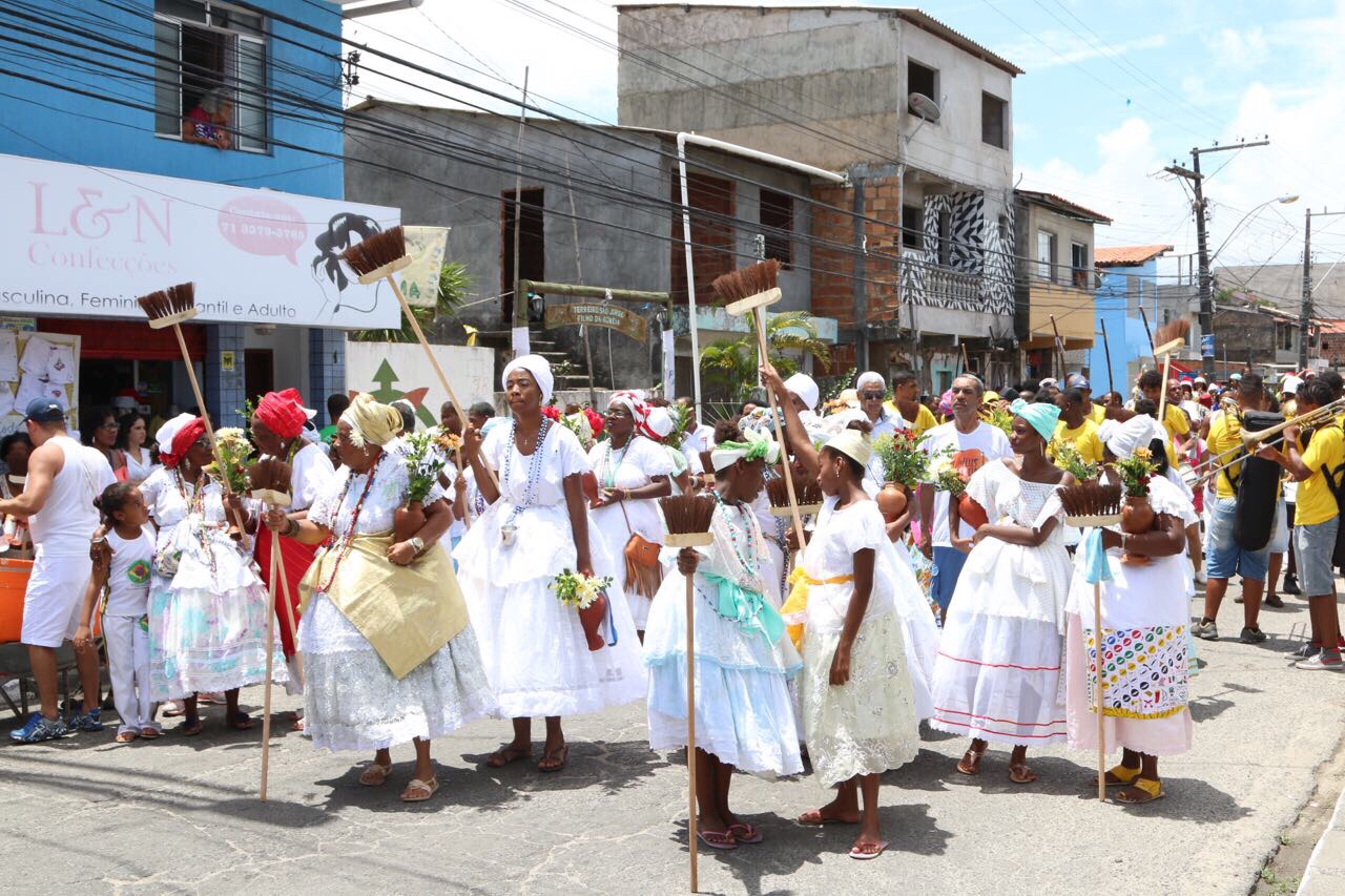 Mestre em cultura popular e moradora de Portão, dona Aidê, que deu nome a um dos circuitos da festa, desfilou no cortejo com seu grupo de dança. “É muito bom ser homenageada ainda em vida por fazer parte da história de Lauro de Freitas”.