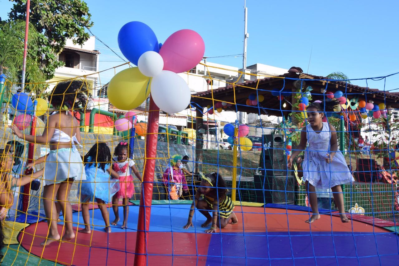 As bolhas de sabão explodiam no ar enquanto a garotada se divertia com a turma da recreação. Brincadeiras antigas foram as principais formas de diversão. Pega-pega, esconde-esconde, trenzinho, estatua e cantigas de roda, tudo sob o comando lúdico dos profissionais fantasiados.