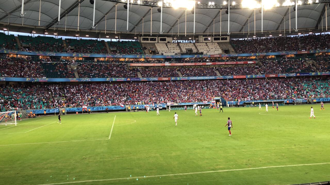Bahia e Vitória se encontraram na tarde de hoje (1º) pelo primeiro jogo da final do Campeonato Baiano 2018, em partida realizada na Arena Fonte Nova. Com o estádio lotado de torcedores, os dois times fizeram um clássico recheado de emoções e polêmica. Com gols de Edigar Junio e Vinícius, o tricolor venceu o rival por 2 a 1.