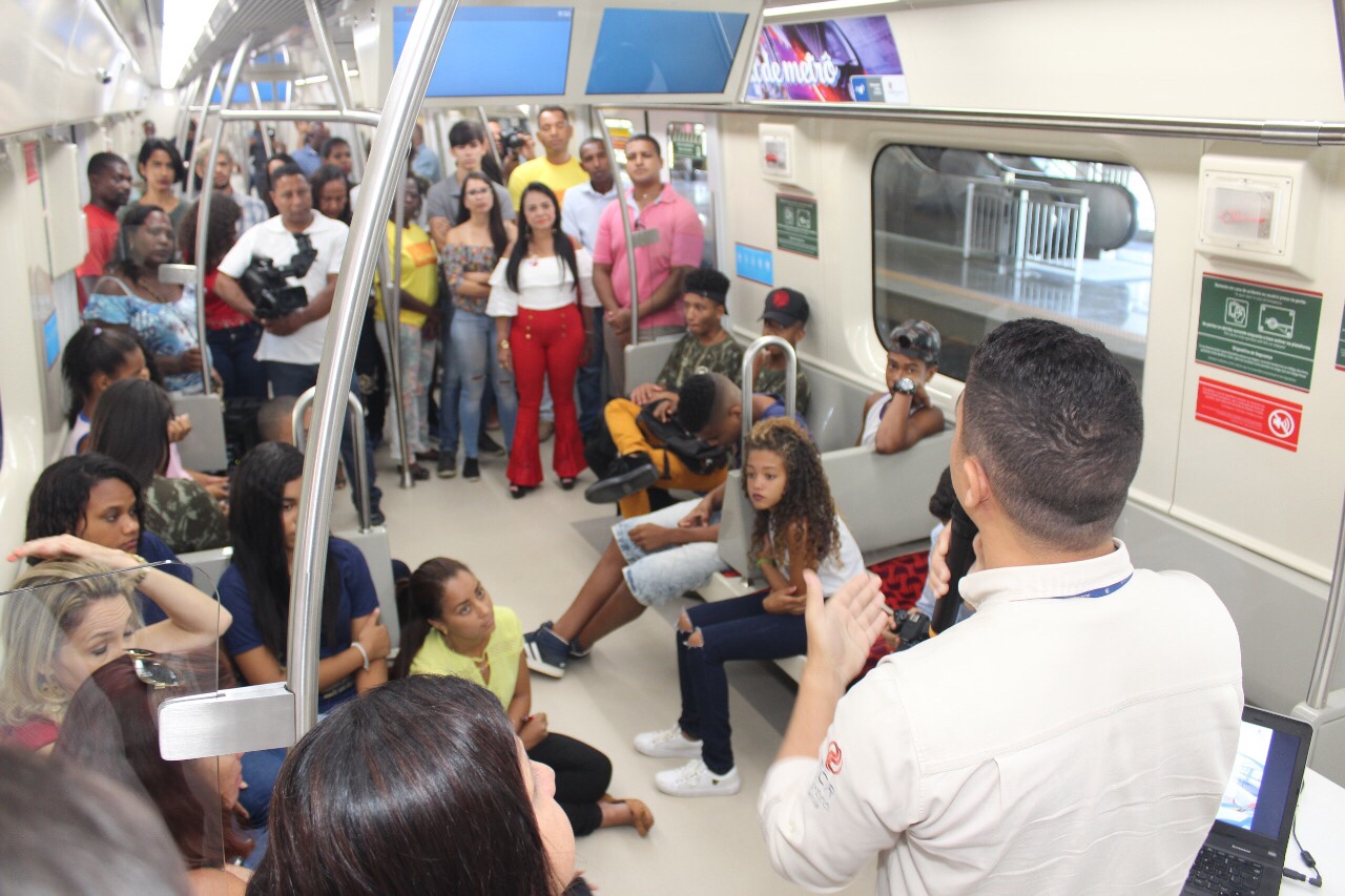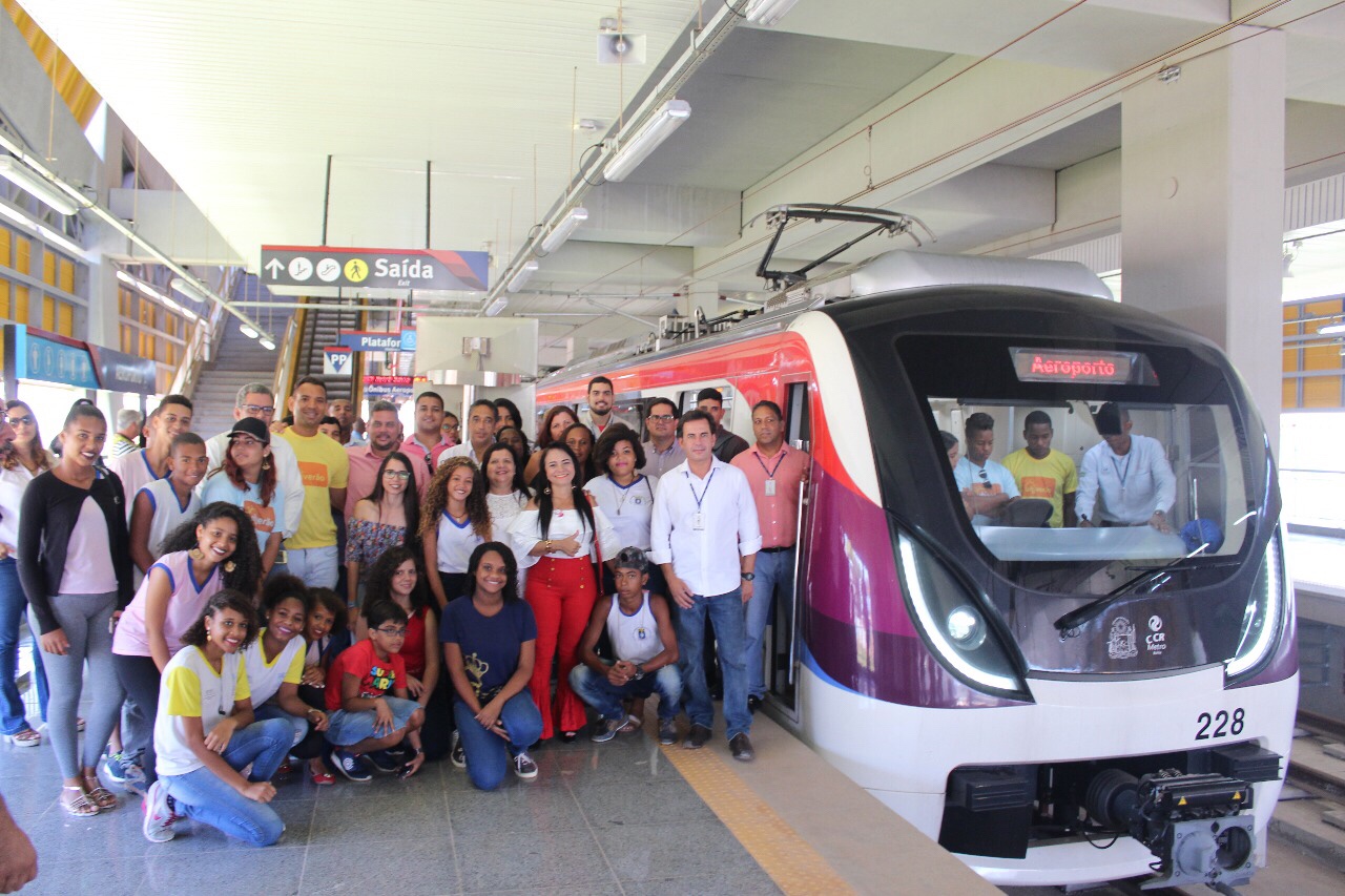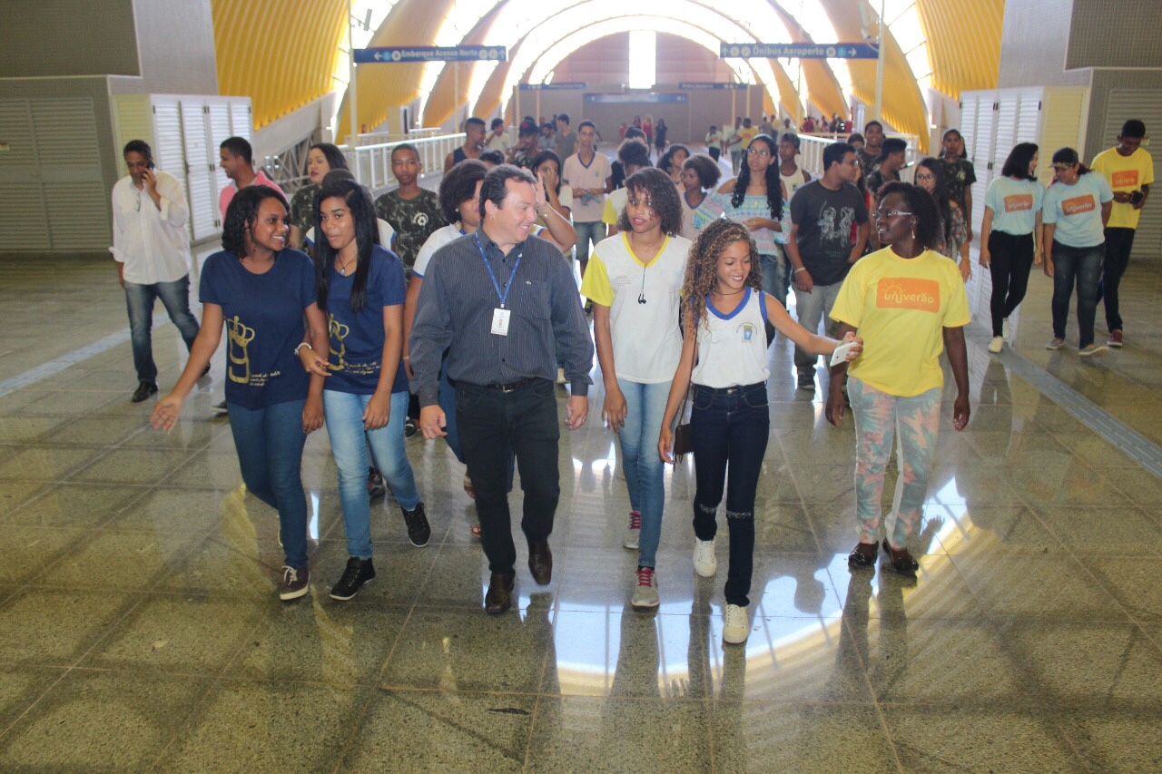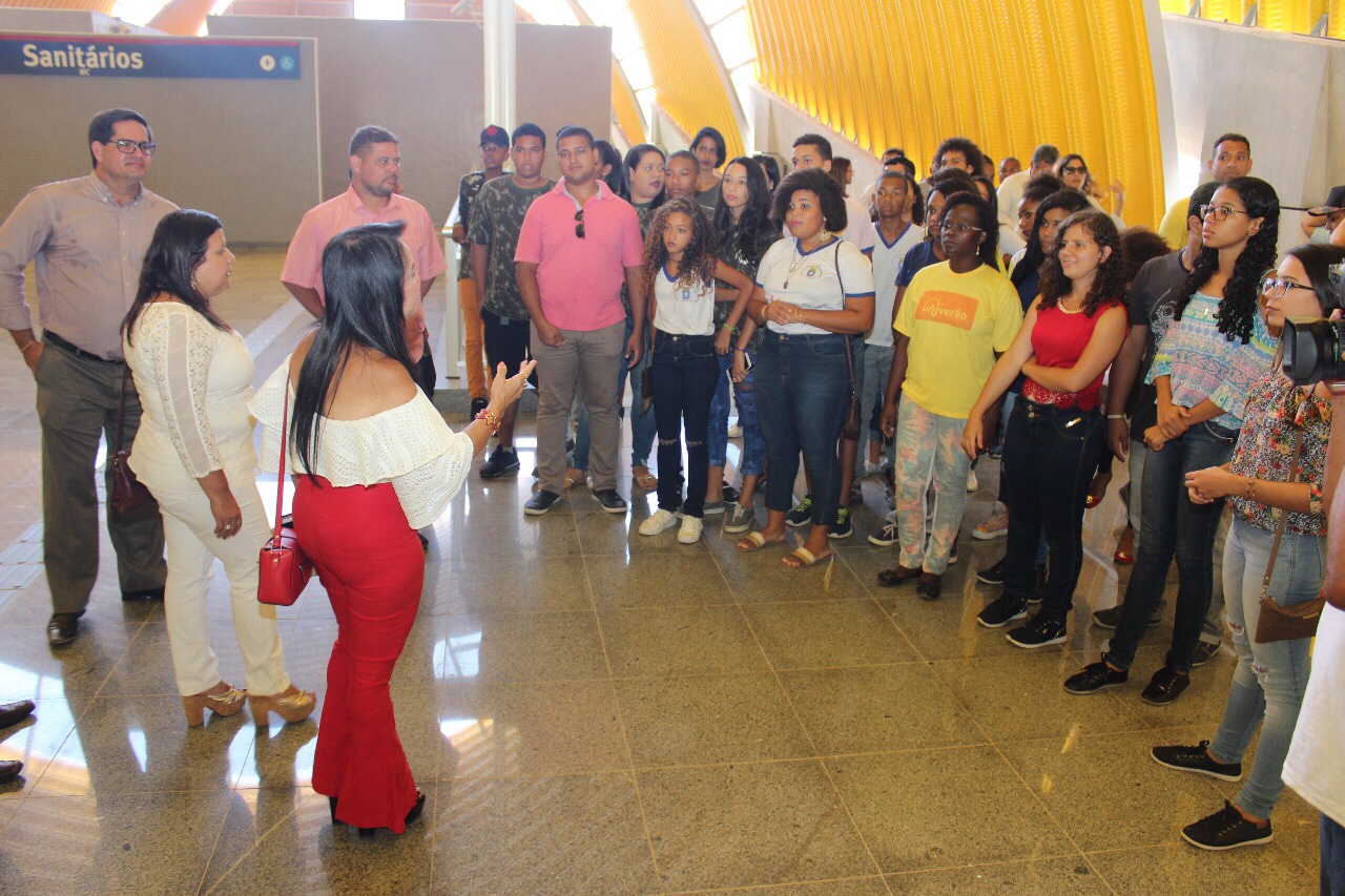 Como extensão das atividades de tecnologia da Univerão, estudantes tiveram a oportunidade, nesta sexta-feira (19), de conhecer a Estação Aeroporto de Metrô e assistir a uma aula dentro do trem. Os alunos da escola Municipal Santa Julia, da UFOB-Universidade Federal do Oeste Baiano e UNIVASF-Universidade Federal do Vale do São Francisco conheceram o funcionamento técnico e operacional do trem e das estações de metrô.