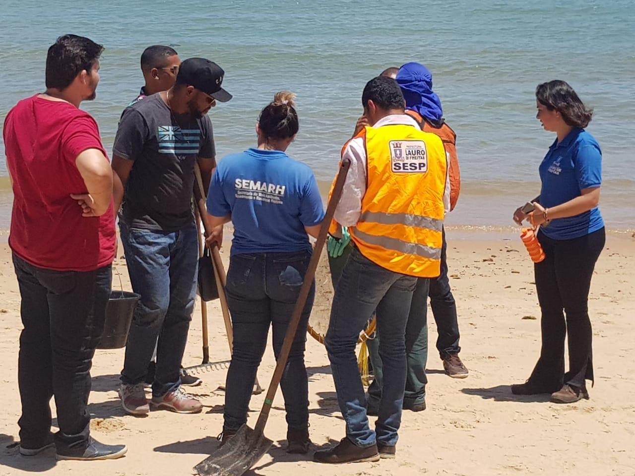 Hoje (18) parte da equipe de servidores da SEMARH esteve na Praia do Forte participando da capacitação sobre o petróleo, abrangendo as formas corretas de manuseio, remoção, acondicionamento e descarte. Iniciativa importante tendo em vista o monitoramento do óleo, resíduo tóxico, que vem atingindo nossas praias, cujo fato causador ainda não foi descoberto. O treinamento, ministrado por Smith da Transpetro contou com a participação de representantes dos municípios de Mata de São João, Camaçari, Porto Sauípe, além de Lauro de Freitas. O INEMA e Projeto TAMAR também se fizeram presentes.