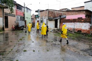 Equipes da Sesp e da Seinfra estão nas ruas fazendo um trabalho de desobstrução de canais e bocas de lobo. O Rio Ipitanga, que atravessa a cidade vindo da capital está cheio, e é possível verificar que as obras de macrodrenagem, que estão avançadas, foram tomadas pelas águas, o que, provavelmente, impediu que invadissem as ruas laterais.