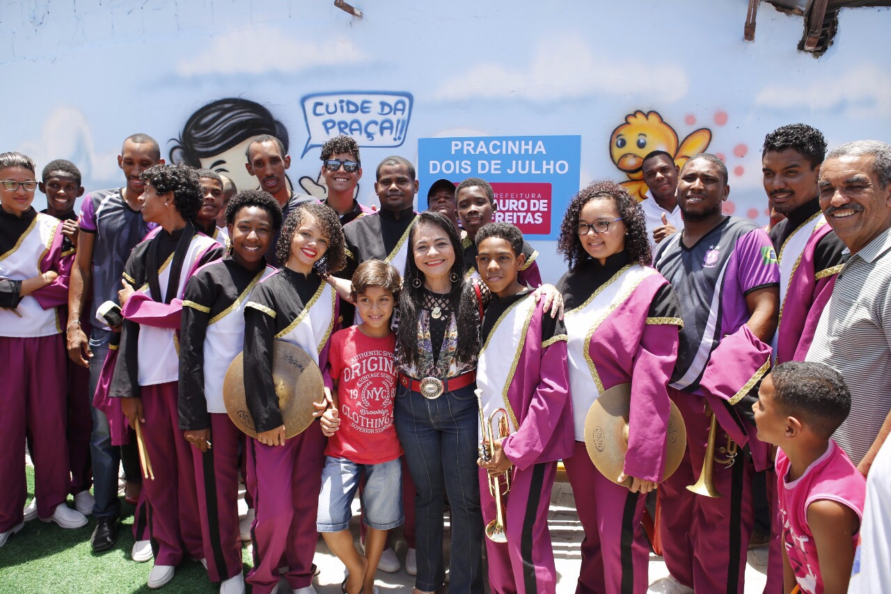 Ao som da Fanfarra Renovação da Bahia, a prefeita Moema Gramacho enfatizou que a praça foi feita para o lazer das crianças e de toda a comunidade. Destacou que sua única preocupação é com o bem-estar da população e por isso não vai permitir que nenhum metro quadrado seja deixado para a cidade de Salvador, que nunca administrou a localidade.