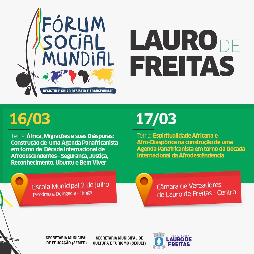 O Fórum Social Mundial em Lauro de Freitas foi sucesso absoluto em parceria com a Unilab e Emunde. Oito nações africanas representadas, grande delegação da universidade Unilab, grande delegação do Ceará, 19 renomados palestrantes, grandes e produtivas rodas de conversas. Amanhã continua com atividades na Câmara de Vereadores
