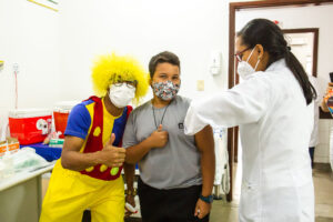 A vacinação realizada nos pontos da faculdade Unime, Centro, e do Hospital Jorge Novis, Itinga, contou com a animação de palhaços que motivaram a garotada. Maria Eduarda Góes, de 6 anos, foi uma das primeiras crianças a receber o imunizante.