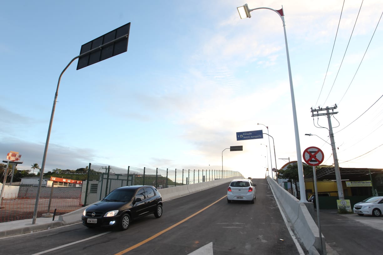 O viaduto na Travessa Santos Dumont, mais conhecida como Rua das Locadoras, foi liberado para o tráfego, na tarde desta quarta-feira (7), pelo Governo do Estado. O equipamento garante o acesso direto de quem segue do Aeroporto Internacional de Salvador com destino à Estrada do Coco, sentido Litoral Norte, e no sentido contrário. Antes, para fazer o mesmo trajeto, os motoristas precisavam seguir pela Rua do Bambuzal e pegar o viaduto da Estação Aeroporto de Metrô.