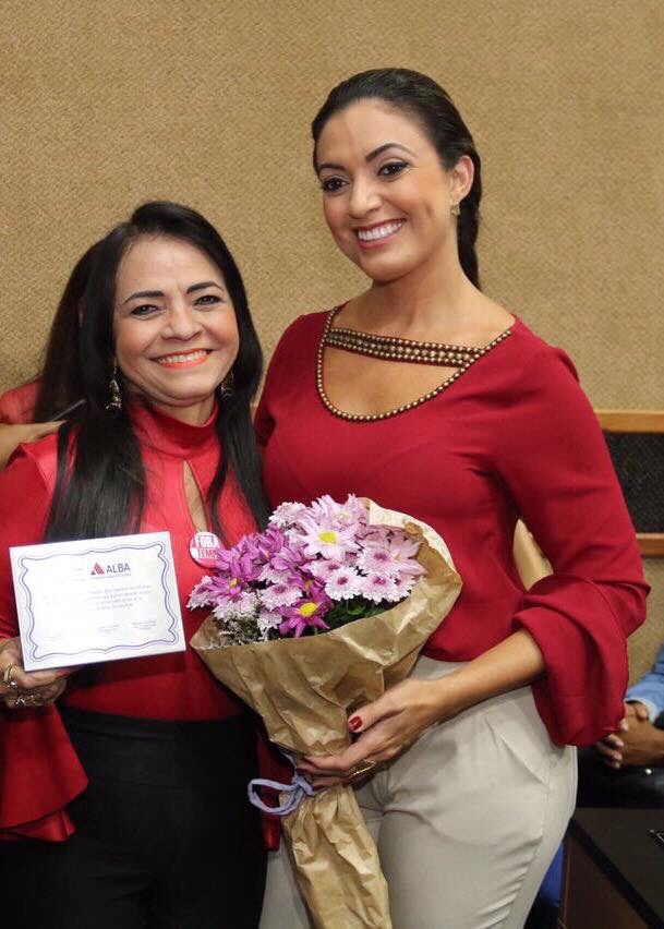 “As comemorações ao mês da mulher continuam. Desta vez, fui homenageada na Sessão Especial Março Mulher, no plenário da Assembleia Legislativa da Bahia!”, postou a prefeita nas redes sociais.