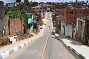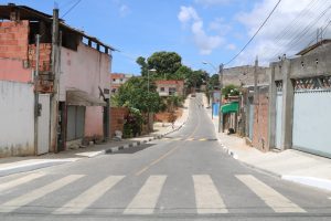 Da porta de casa, o Laurêncio Freitas Anunciação, de 74 anos, falou sobre a mudança trazida pelas obras na vida dele e das filhas que moram na Rua Boa Vista do CAIC. “Hoje é outra coisa. Antes era um barro que a gente não podia nem descer de carro, porque ficava atolado. Hoje me sinto feliz quando eu chego aqui, melhorou 100%, porque antes era uma lama terrível.”