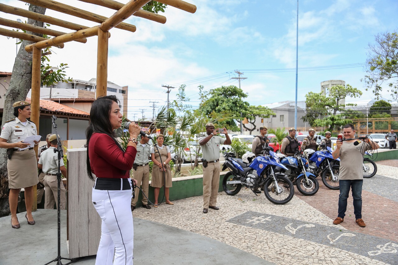 A Prefeitura de Lauro de Freitas e a 52ª Companhia Independente da Polícia Militar lançaram, nesta sexta-feira (9), o Pelotão de Motocicletas que vai intensificar o policiamento no município. A atividade foi realizada no Parque Ecológico, em Vilas do Atlântico, onde as motos que integram o pelotão foram entregues, de maneira simbólica, pela prefeita Moema Gramacho e pelo comandante do Policiamento da Região Metropolitana de Salvador (CPRMS), coronel Alfredo Nascimento.
