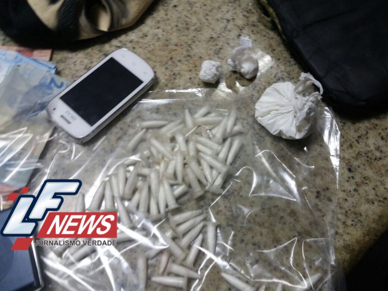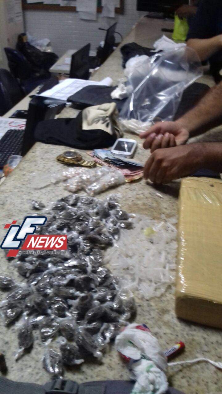 Dando continuidade à ocorrência, os policiais foram informados pelos abordados que mais dois integrantes da quadrilha identificados como RIAN LUCAS SILVA SOUZA E BRUNO LEITE DE JESUS estavam no centro de Lauro de Freitas com grande quantidade de drogas. Com apoio da SOint da 52 ª CIPM, as guarnições chegaram ao local indicado e imediatamente identificaram e prenderam os suspeitos e em poder deles foram encontrados os seguintes objetos: