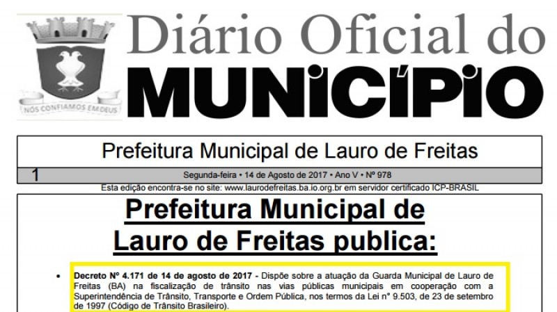 A reportagem entrou em contato com a assessoria de comunicação da Prefeitura de Lauro de Freitas e foi informada que “Nos municípios onde a Lei Municipal conferir a Guarda Municipal a função de também fiscalizar o trânsito é possível a aplicação de multas, desde quando o Supremo Tribunal Federal julgou o um Recurso Extraordinário de 658670, da cidade Belo Horizonte, em 2014, que questionava as multas de trânsito lavradas por guardas municipais”.