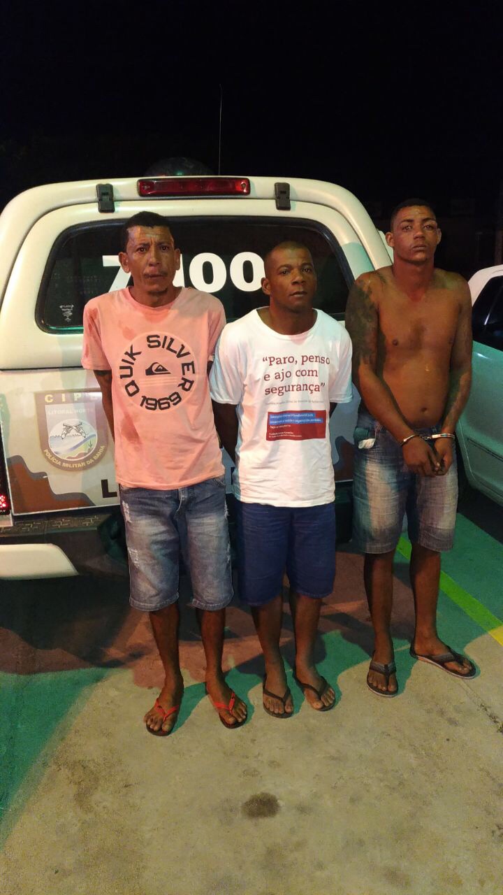 Reginaldo de Andrade Ferreira, conhecido como ‘Caboré’, José Raimundo Santos de Jesus, o ‘Calango’ e Adriano de Jesus da Paixão, o ‘Tatinha’ foram capturados em Esplanada com uma motocicleta roubada da cor preta, placa JSZ-4634, e porções de maconha e cocaína prontas para a comercialização.