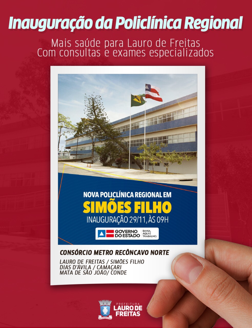 Lauro de Freitas e outros cinco municípios da Região Metropolitana de Salvador serão beneficiados com exames e consultas de média e alta complexidade após a inauguração da Policlínica Metro Recôncavo Norte. O equipamento instalado em Simões Filho será entregue nesta sexta-feira (29) e é parte do projeto Consórcios de Saúde implantado pelo governo do Estado para desafogar o sistema de saúde e melhorar o atendimento à população.
