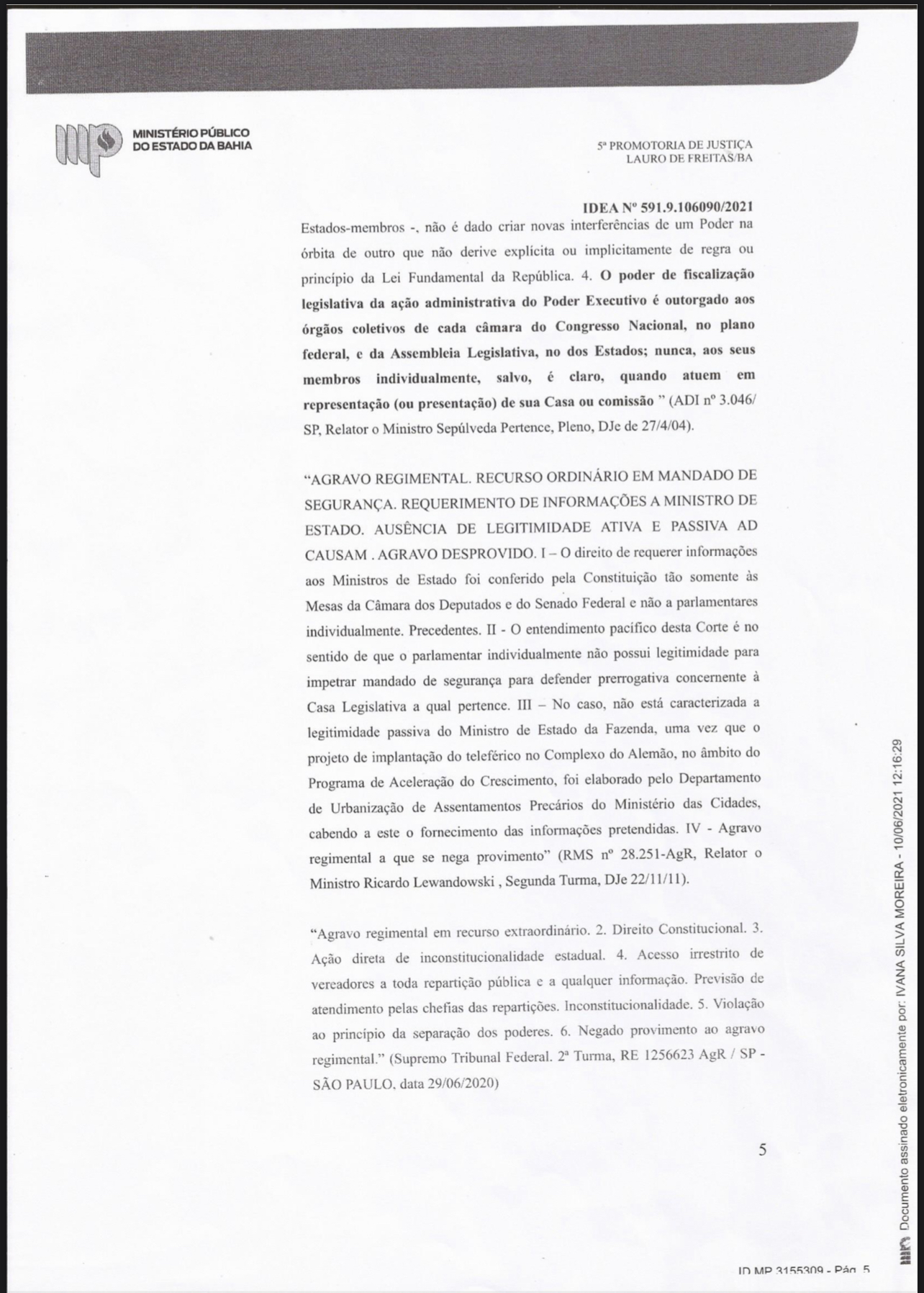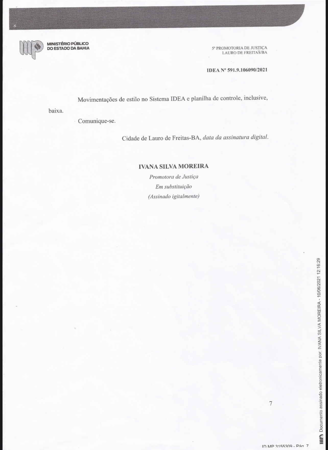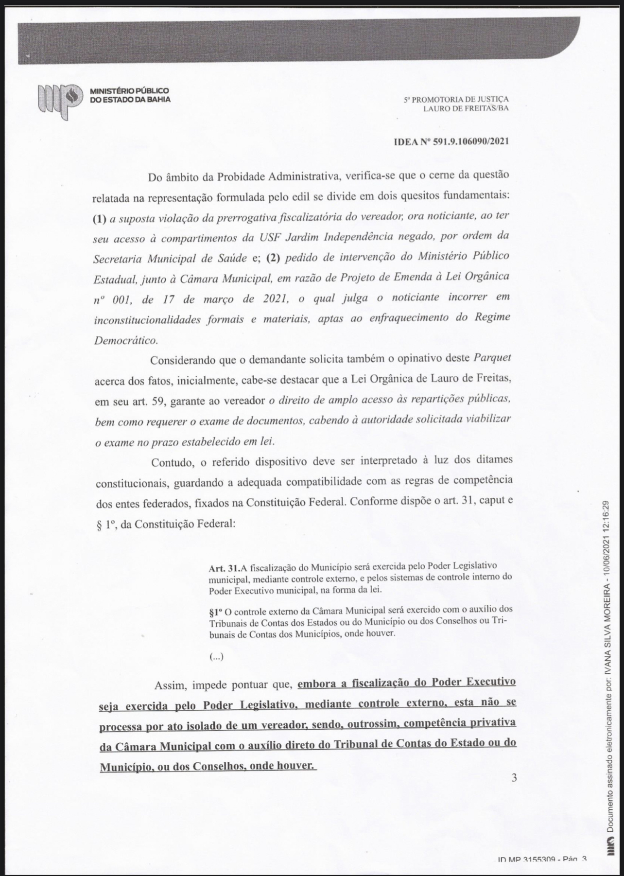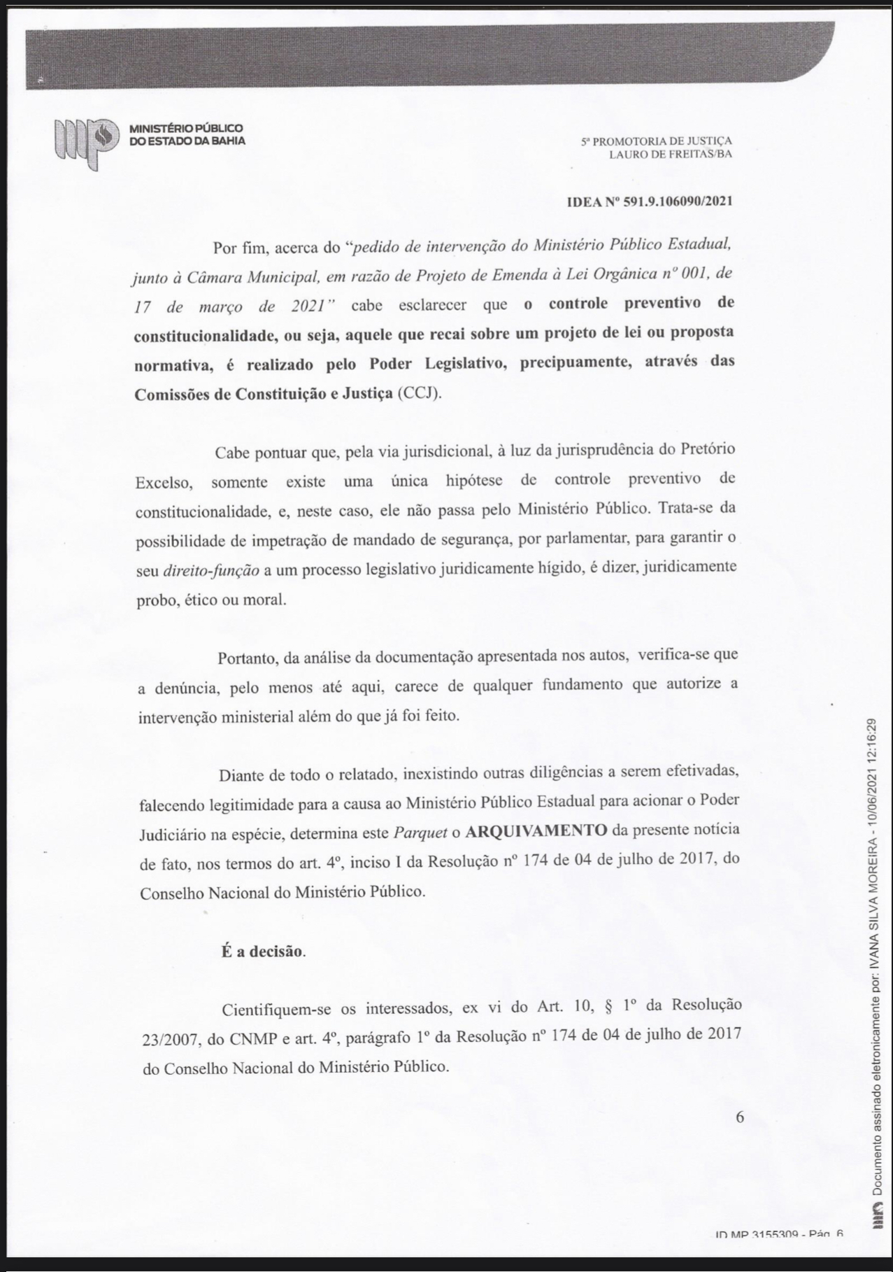 A decisão é da promotora de Justiça Ivana Silva Moreira, da 5ª Promotoria de Justiça de Lauro de Freitas, com base no que determina a Constituição Federal, amparada em “farta jurisprudência do Supremo Tribunal Federal”.