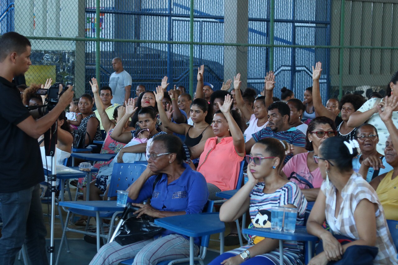 A reunião, no Centro Educacional Municipal Fênix, contou com a participação de moradores da Lagoa da Base, Lagoa dos Patos, Jardim Tropical, Boca da Mata, Sempre Verde, Caji e Caixa D´Água, Chafariz, beneficiários de bolsa aluguel e pessoas que já estão cadastradas aguardando a entrega do Residencial Santo Amaro de Ipitanga.