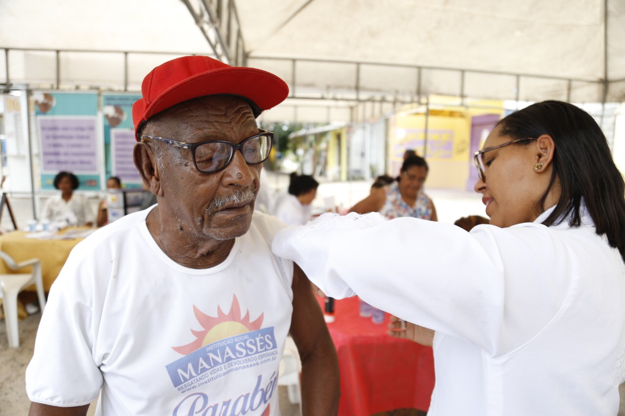 Ao lado do stand de vacinação, instalado na Praça do Caji, Catarino de Freitas aproveitou o Cartão SUS que já estava em mãos para garantir o seu repelente. A mesa de informações sobre o Estatuto do Idoso também foi conferida pelo senhor que aprovou as ações do Programa. “Eu gostei de todos os benefícios que trouxeram aqui pro bairro” disse. A distribuição de repelentes é feita, preferencialmente, para idosos e gestantes, mediante apresentação do documento.