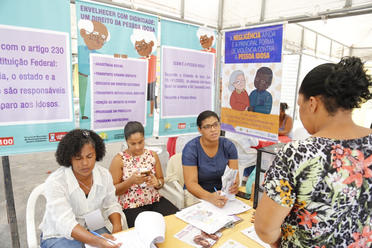 O aposentado Catarino de Freitas, 88 anos, foi um dos primeiros moradores do bairro Caji Caixa D’Água a ser atendido, nesta quinta-feira (23), pelos serviços do Programa Prefeitura em Ação da administração municipal de Lauro de Freitas. “A moça disse que eu precisava fazer exercícios e me passou uma receita de alimentação saudável”, relatou Catarino sobre o atendimento de Orientação Nutricional enquanto aguardava a vez para tomar a vacina H1N1.
