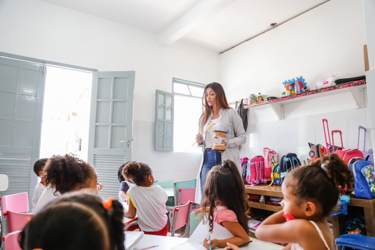 Alunos da Creche Escola Mãe Maria, no Caji Caixa D’Água, tiveram uma aula diferente nesta sexta-feira (24). É que o ‘Prefeitura em Ação’ levou para a unidade orientações sobre saúde bucal. As crianças aprenderam técnicas de escovação correta e cuidados que devem tomar para preservar a saúde dos dentes que logo mudarão para permanentes. A atualização do cartão de vacina, um dos serviços da administração municipal, também foi realizada na creche.