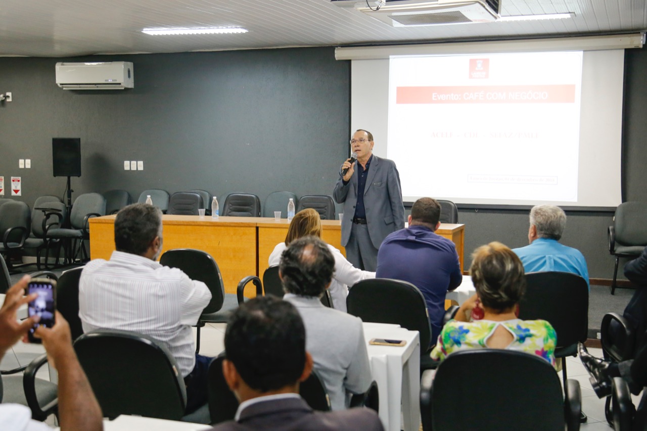 O “Café com Negócios” deve acontecer uma vez no mês visando reduzir as dificuldades, simplificar e otimizar os processos buscando uma melhoria significativa na comunicação entre município e empresários. O secretário chefe de Gabinete da Prefeitura, Roberto Wellington Lopes, participou do evento.