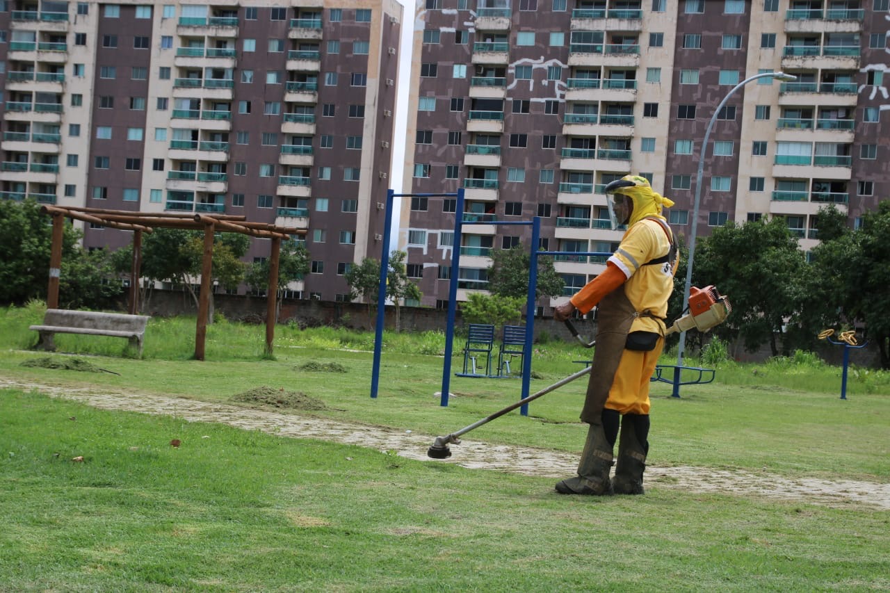 Os serviços de capina, roçagem e manutenção das áreas com mato e vegetação estão finalizando essa semana a limpeza do Solar de Vilas.