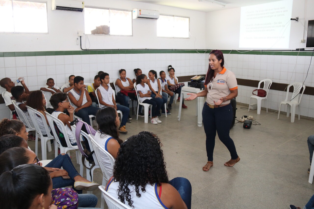 Os alunos da Escola Municipal 2 de Julho, na Itinga – Lauro de Freitas, tiveram uma aula diferente nesta quinta-feira (08), com a presença dos técnicos do Departamento de Educação para o Trânsito da Secretaria de Trânsito Transporte e Ordem Pública (SETTOP). Os agentes levaram orientações direcionadas ao comportamento e segurança no tráfego usando recursos áudio visuais e de dinâmicas em grupo.