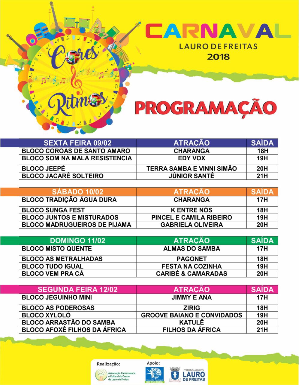 Confira a programação dos blocos: