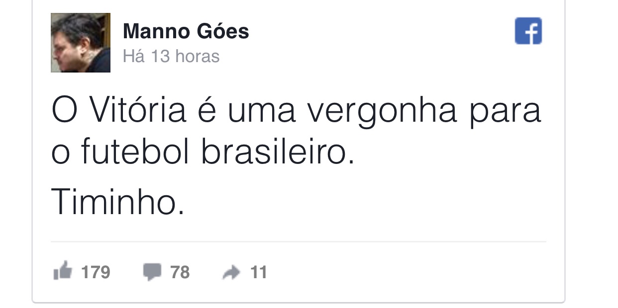 No Facebook, o artista chamou o rubro-negro baiano de “timinho” e disse que o clube era uma “vergonha para o futebol brasileiro”.